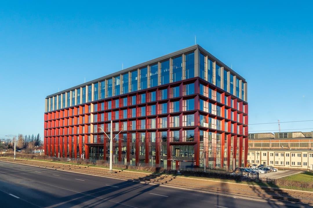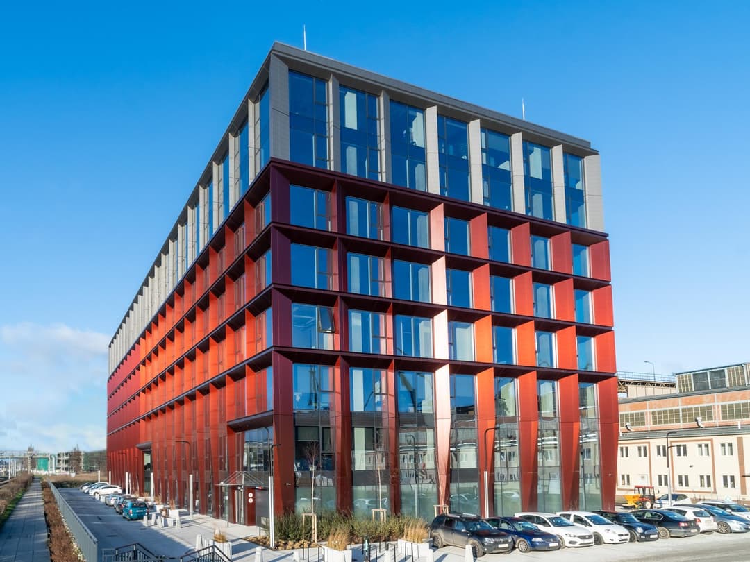 Palio Office Park is a serviced office complex located at Marynarki Polskiej 197 in the Młyniska district of Gdańsk. The property is part of a larger development on the historic grounds of the Gdańsk Shipyard, with a design that reflects the area’s industrial heritage. The buildings feature composite panels in a rust-like color and water features along the facades, echoing the shipyard’s original character. The site is being developed in stages, with the first building offering 16 000 m² of office space across 8 above-ground floors.