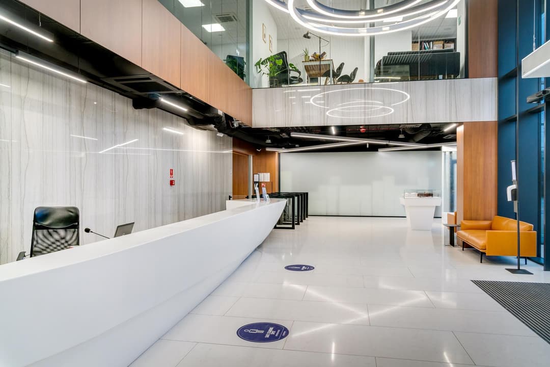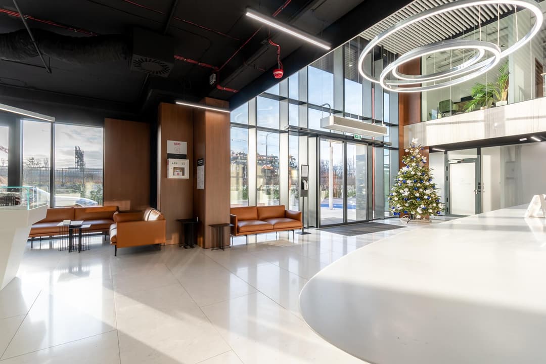 Offices are available for teams of various sizes, with workstations priced at 650,00 PLN per month. Options range from spaces for 26 to 55 people, so there’s flexibility whether you’re a growing startup or an established company. The building is equipped with modern management systems, including tools for booking meeting rooms and managing access, and has received BREEAM Excellent and WELL Health-Safety certifications.