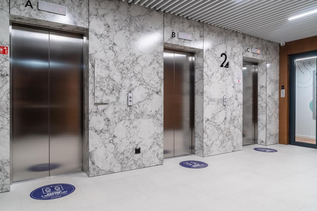 Within the complex, you’ll find a grocery store (Żabka) and a gym (Hala Sportowa), making it easy to grab essentials or fit in a workout during the day. The development also includes a canteen, a medical facility, a preschool with an outdoor playground, and a café, all designed to support daily needs and work-life balance.