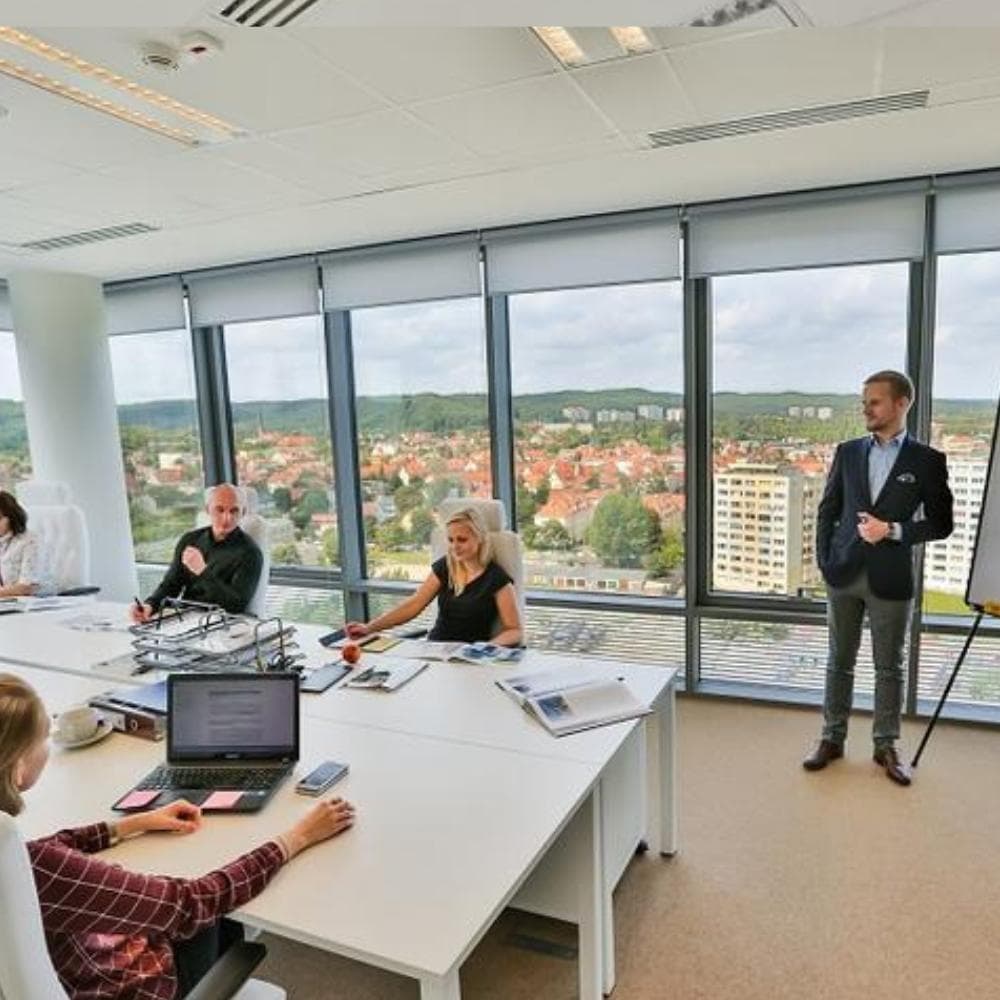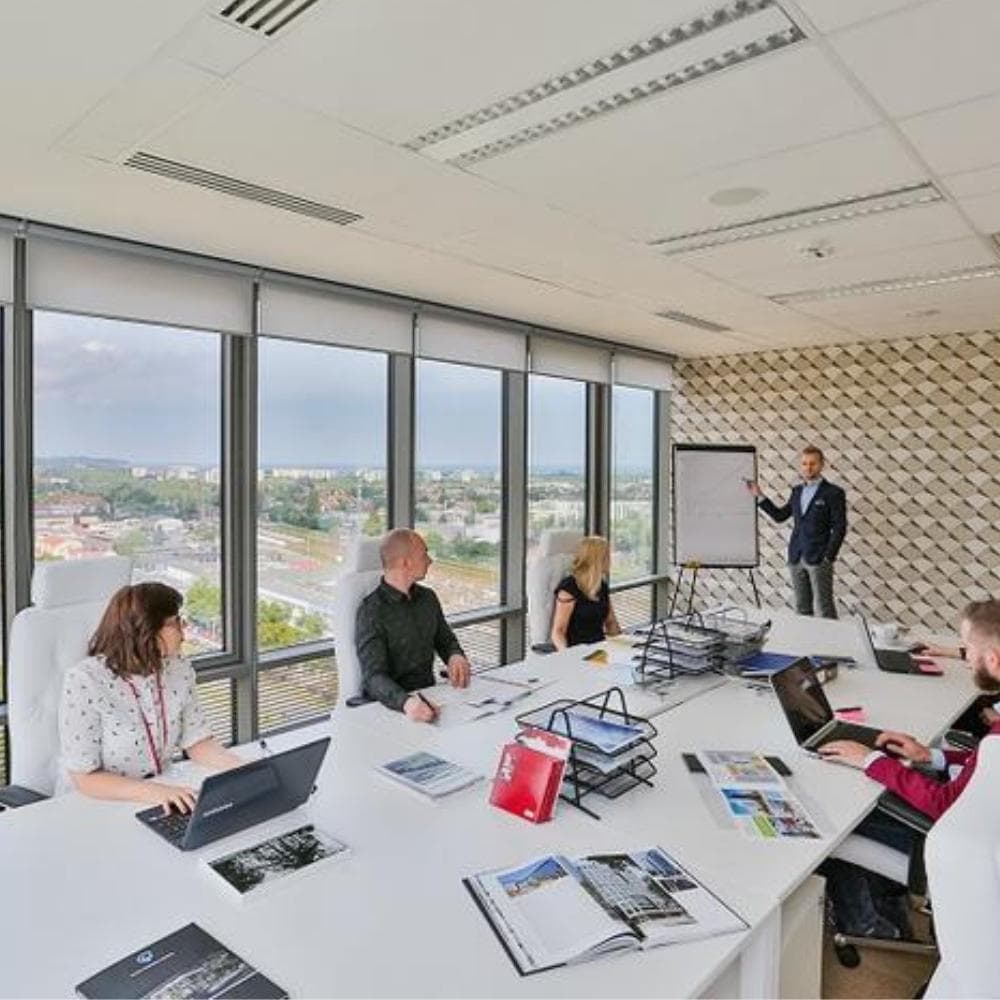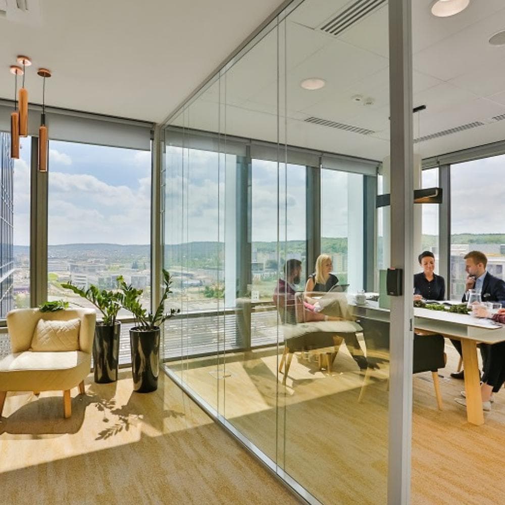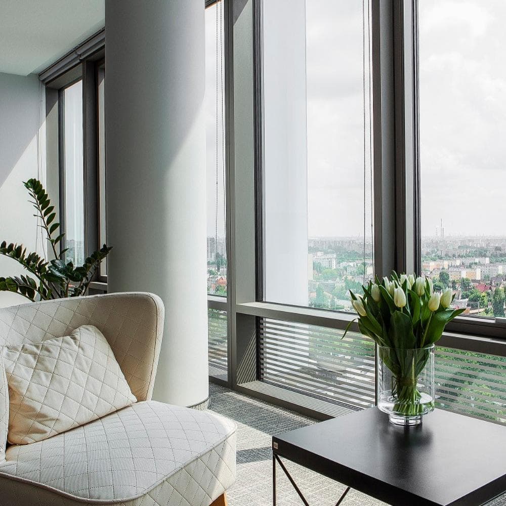 O4 Six is a serviced office building located at ul. Grunwaldzka 472 in the Oliwa district of Gdańsk, Poland. The workspace offers a unique vantage point with panoramic views across the Tricity area, making it a memorable spot for both daily work and client meetings. The atmosphere is defined by a sense of style and sophistication, and a dedicated community manager is always on hand to ensure guests and tenants feel welcome and supported.