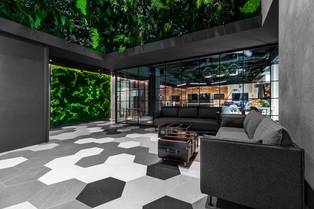 Each office space is furnished with ergonomic furniture, including desks with electric height adjustment. On every floor, you’ll find a modern kitchen, phone booths for private calls, and thoughtfully designed relaxation zones. There’s also a spacious terrace, a gaming room, and a dedicated relaxation room-ideal for taking a break or recharging during the workday.