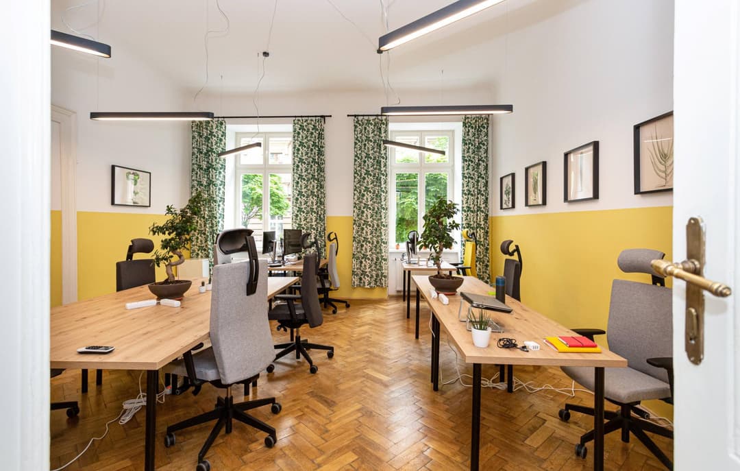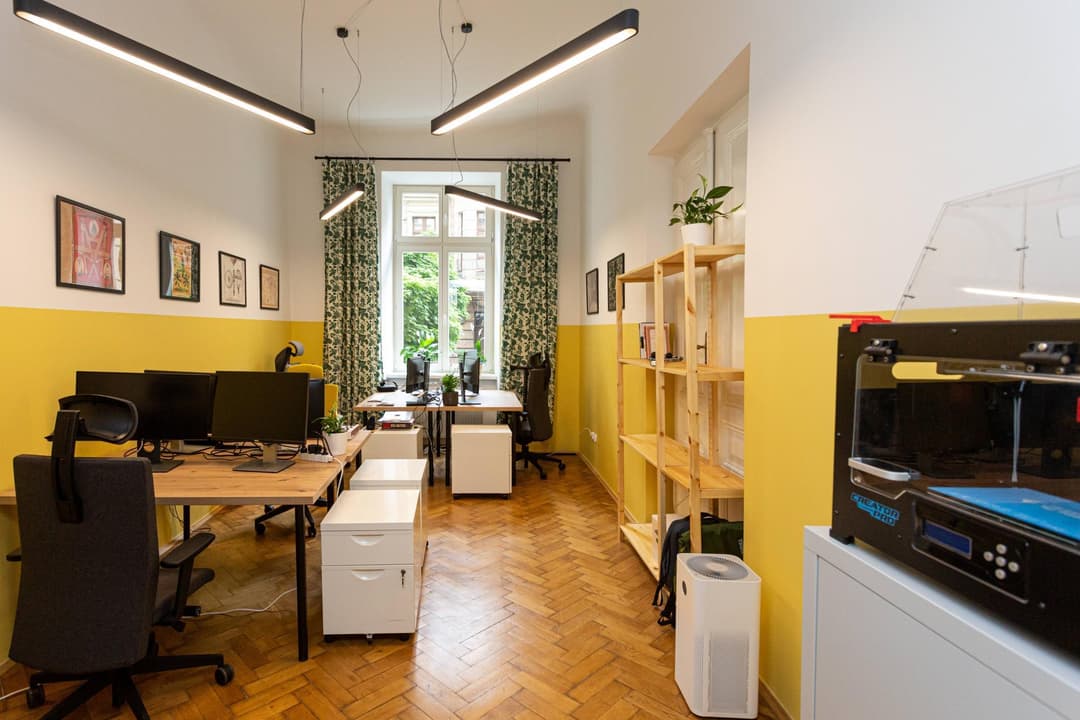 Kalafiornia Coworking & Offices is a serviced office space located at Józefa Sarego 18/1, right in the heart of Kraków’s Stare Miasto. This spot is designed for those who want to focus on work without distractions-no events or training sessions are held here, so you can always count on a peaceful atmosphere. Each workstation comes with a spacious desk, an ergonomic chair, and access to a fast 500 Mbit fiber-optic internet connection, making it easy to stay productive throughout the day.