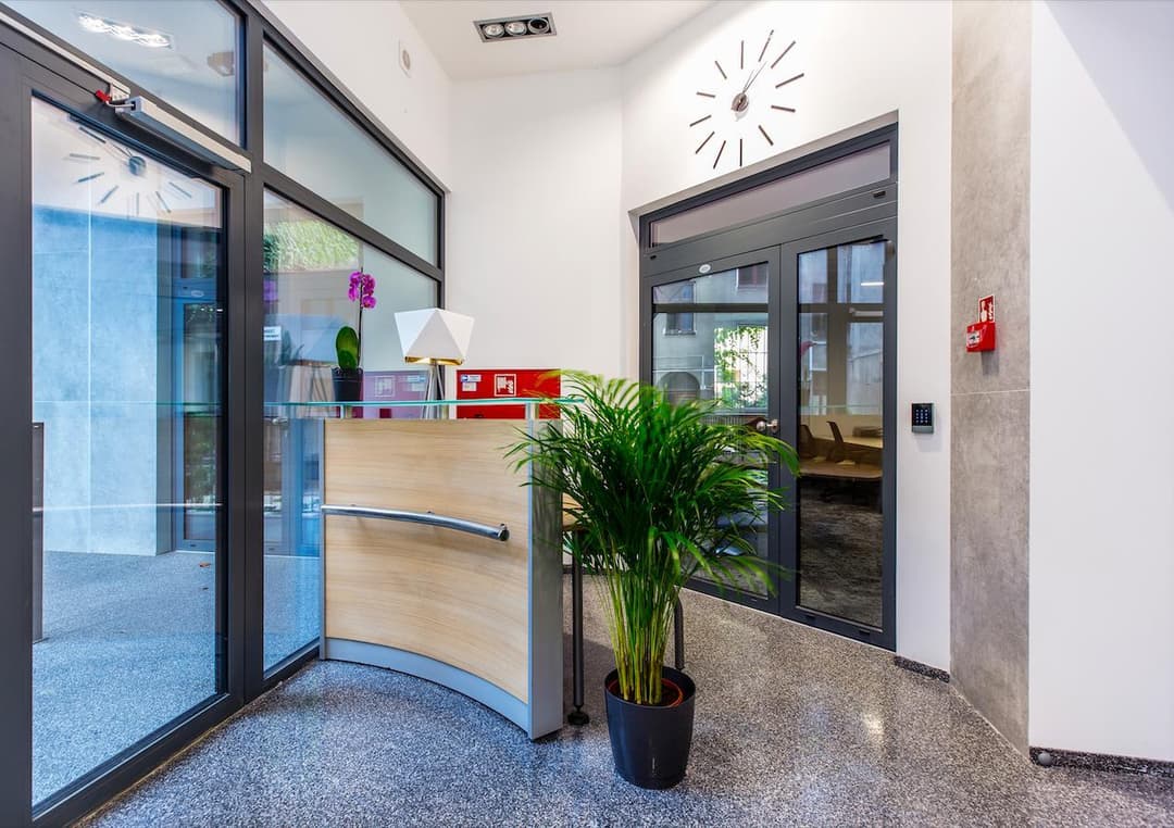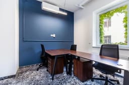 Each office is fully furnished and ready for immediate use, featuring individually controlled air conditioning, electronic locks with magnetic cards, and a private bathroom with a shower and toilet in every unit. High-speed internet, landline phones, printers, copiers, and a coffee point are all available to support your daily workflow. The building is cleaned daily, and reception services include handling calls, mail, and greeting your guests with coffee or tea.