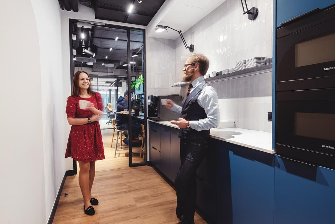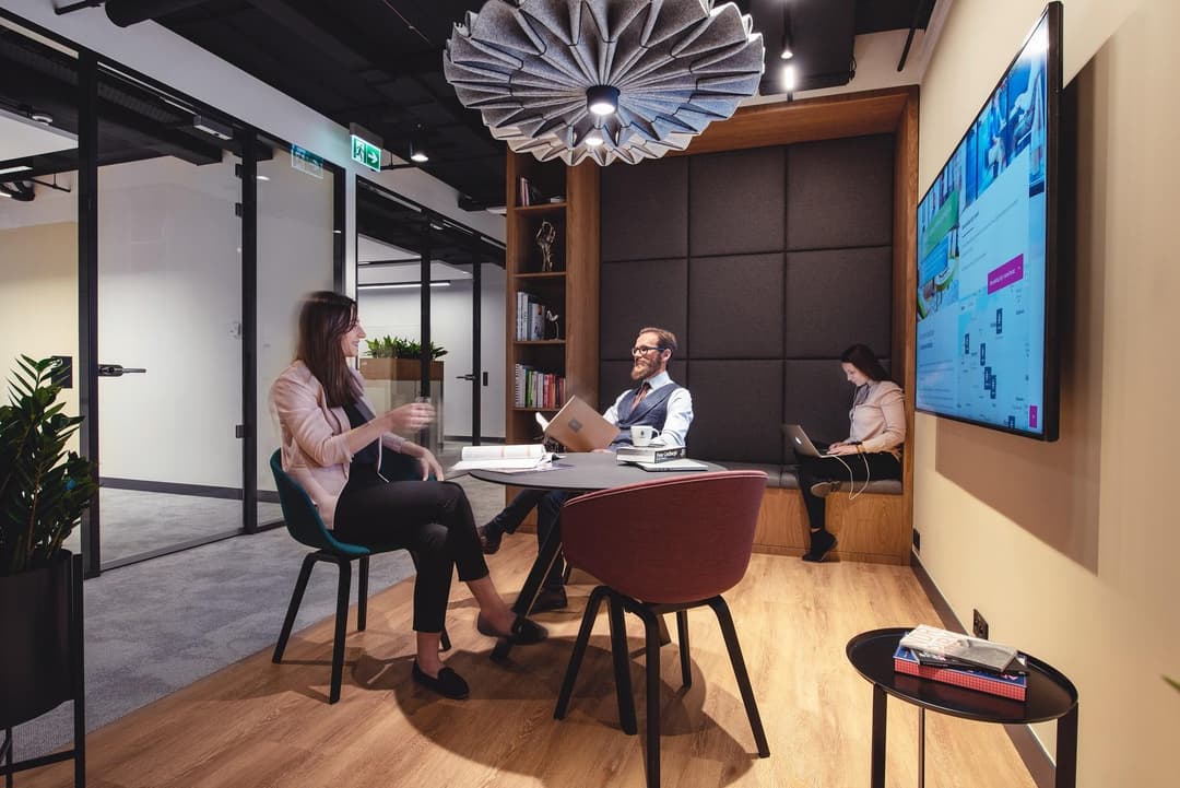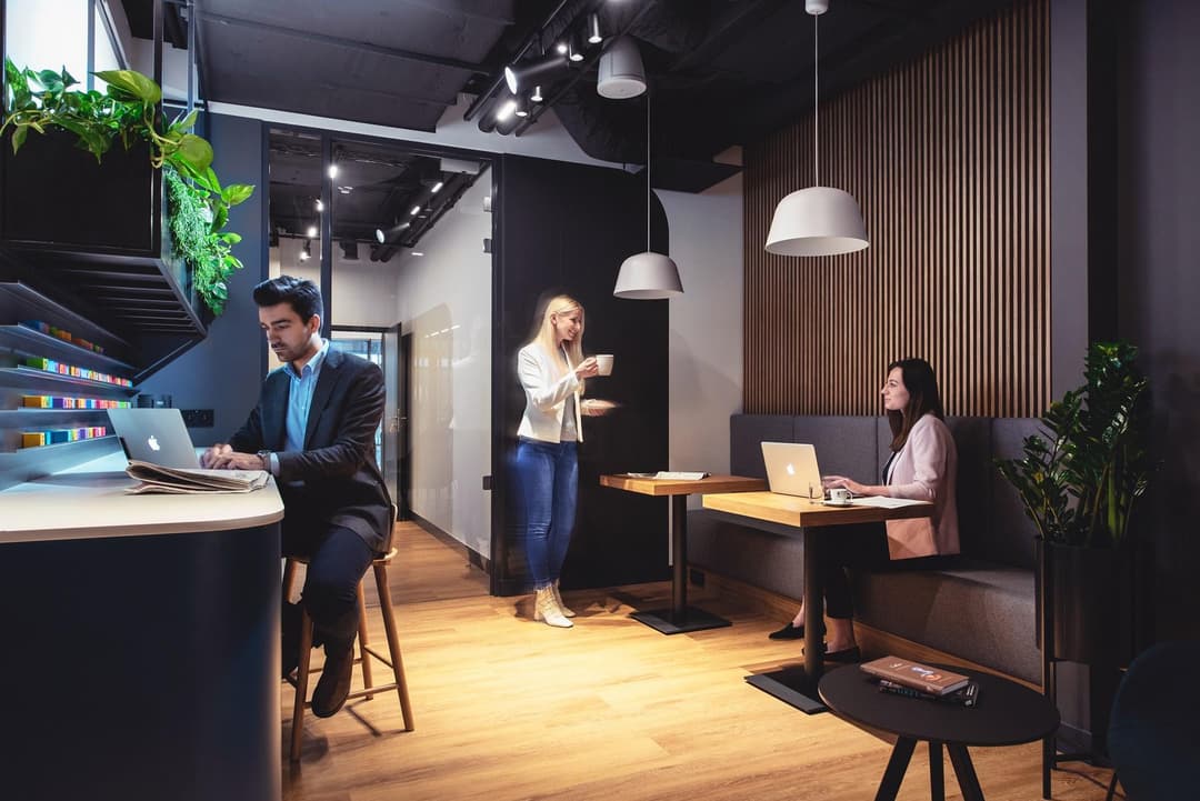 Parking is convenient, with underground spaces available to rent in the building, public street parking, and private parking options in nearby lots. The workspace is designed with comfort in mind, offering around 10 m² per desk, which is more spacious than the industry standard. The interiors feature quality furnishings and fit-outs that help reduce noise, and there’s plenty of natural light throughout the offices.