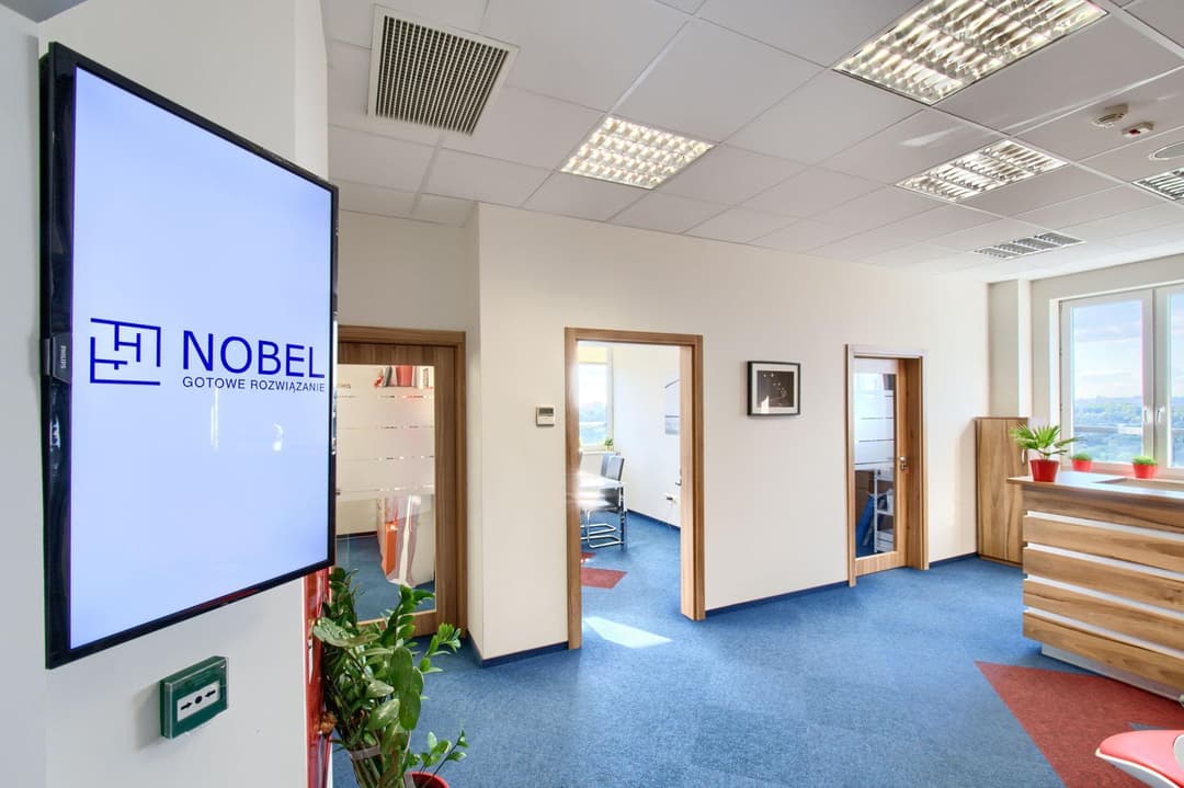 Nobel Mokotów Pory 78 is a serviced office building located at ul. Pory 78 in the Mokotów district of Warsaw, Poland. The building features a welcoming reception area where visitors are greeted and directed to the right office. Inside, you’ll find fully furnished private rooms, workstations, and a meeting room available for use. Flexible packages are available, including options for virtual office services at competitive rates, making it easy to tailor your workspace to your business needs.