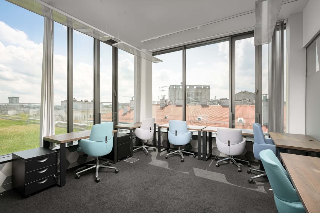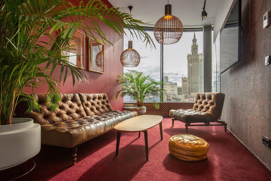 Business Link Astoria offers a variety of workspaces, from cozy private offices to open coworking areas and dedicated desks. The interiors are inspired by New York hotel lobbies, with attention to detail and a comfortable, professional atmosphere. There’s a spacious common area, a well-equipped kitchen, and a green rooftop terrace with panoramic city views-perfect for a break or informal meeting. Conference rooms overlook the Palace of Culture, adding a unique touch to your business gatherings.