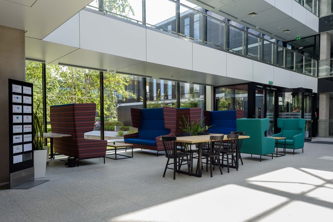 Regus Wilanow Office Park at Adama Branickiego 15 in Warsaw’s Wilanów district offers serviced office spaces designed for productivity and comfort. The building is surrounded by greenery and set in a peaceful neighborhood, making it a great spot for focused work away from the city center’s hustle. Inside, you’ll find open spaces filled with natural light, colorful glass accents, and a friendly atmosphere that encourages collaboration and networking. Whether you need a coworking area or a fully equipped meeting room, there are flexible options to suit different team sizes and working styles.