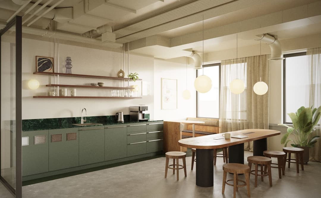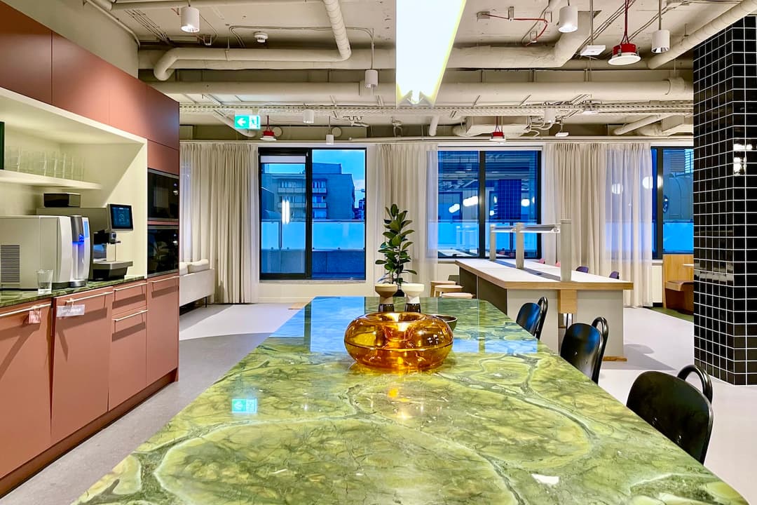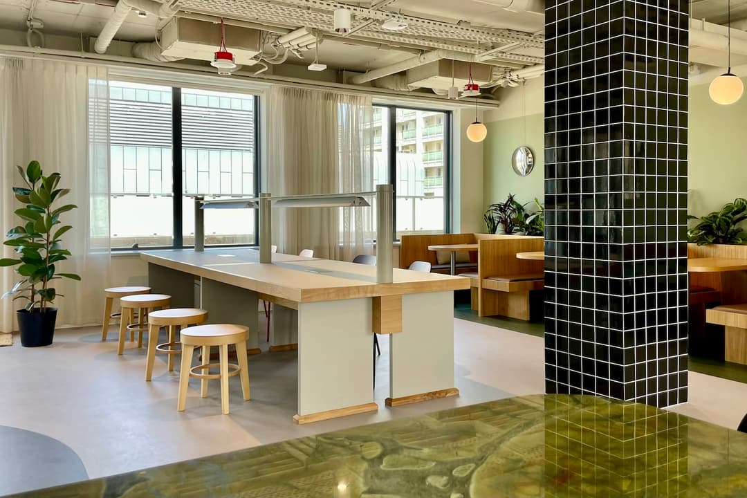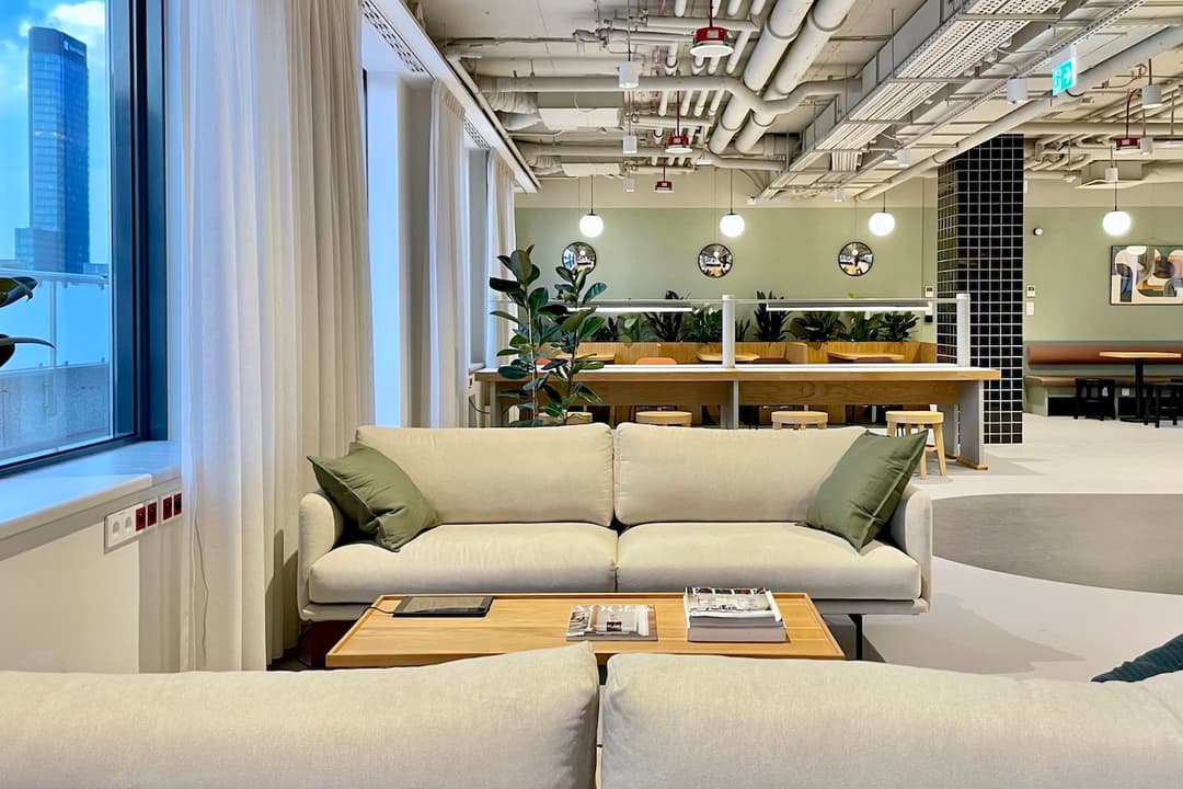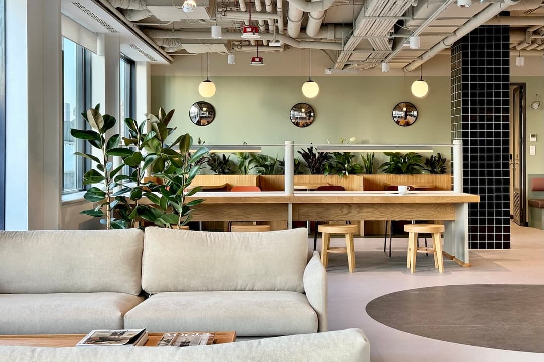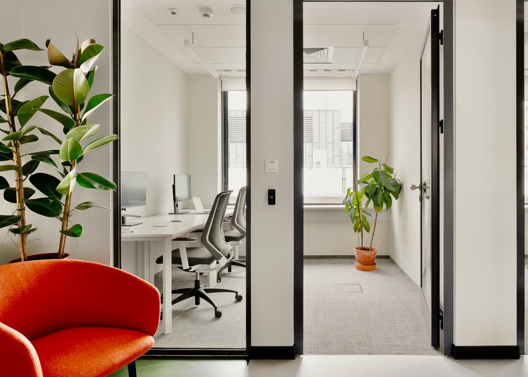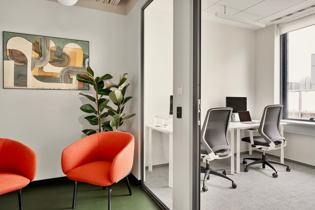 Inside, the office spaces are designed with a focus on private rooms, ranging from cozy 2-person offices to larger spaces for up to 40 people. Each office comes fully furnished with full-size desks and ergonomic chairs, so you can get straight to work. There’s also access to a well-equipped kitchen, elegant lobby, and conference rooms for meetings or brainstorming sessions. If you need a break, there’s a mini gym, a relaxation zone, and even a game room. On sunny days, the terrace is a great spot to unwind or join in on seasonal events.