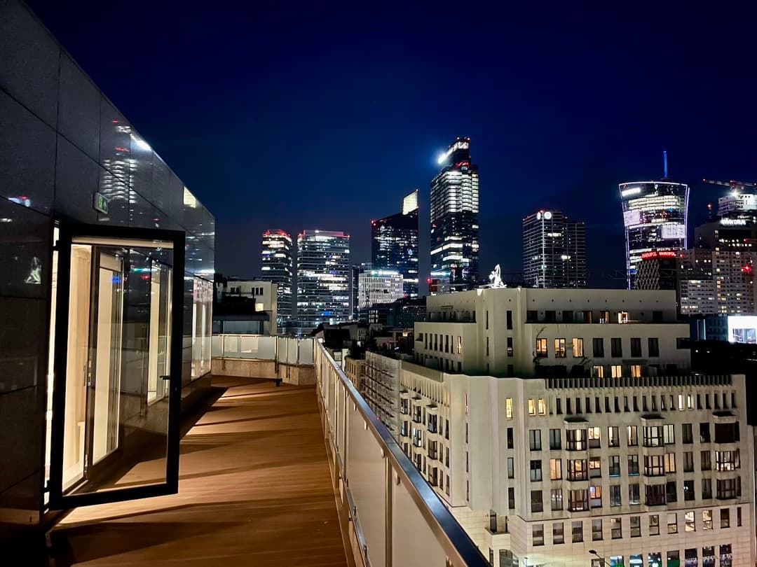 Parking is sorted with underground spaces available for rent, plus public street parking and private lots nearby. For daily essentials, you’ll find Żabka, Biedronka, and Carrefour Express grocery stores within walking distance. When it’s time for a coffee break or lunch, Green Caffè Nero, Vincent, and Velvet are close by, along with restaurants like Sushi tu Thai and Chmielarnia. Hotels such as NYX and Holiday Inn are also in the neighborhood for visiting clients or team members.