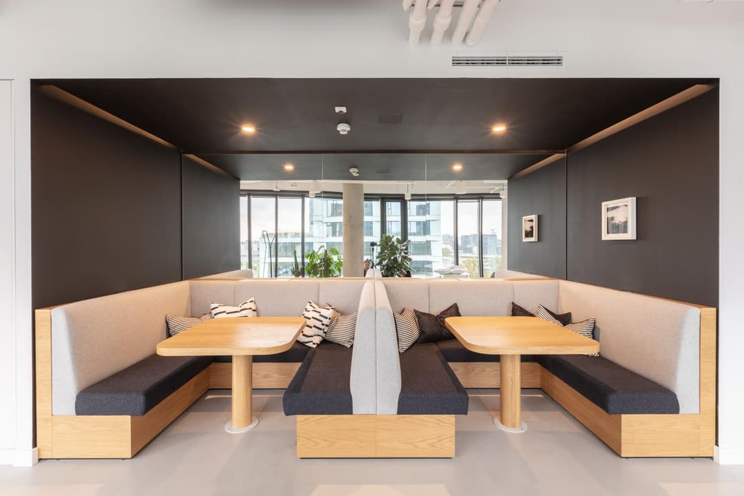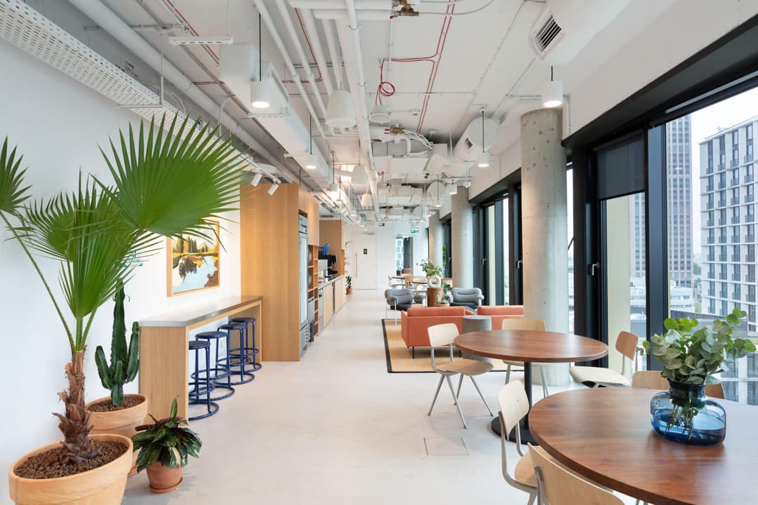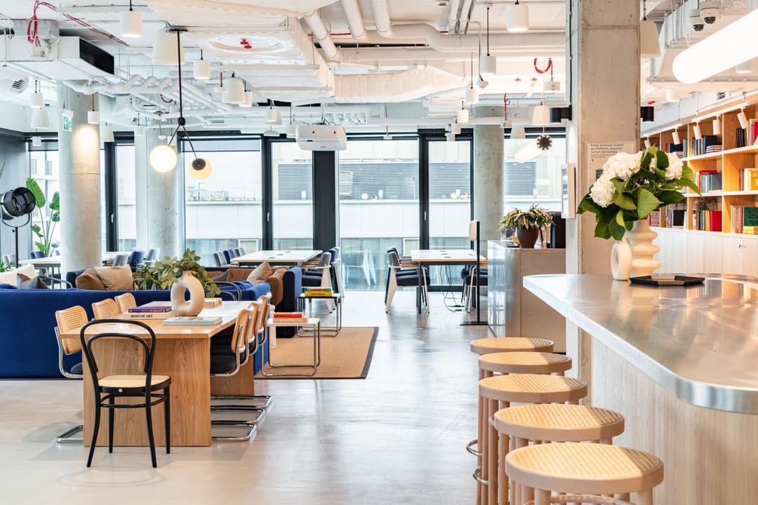 Each private office comes fully furnished, with fast internet, daily cleaning, and access to meeting rooms and brainstorming spaces. There are also phone booths for private calls, a rooftop terrace with city views, and even showers for those who bike to work or hit the gym before starting the day. The kitchens are stocked with coffee, tea, and water, and there’s a barista on hand for fresh coffee. You’ll also find craft beer on tap, and mail handling and guest reception are all taken care of.