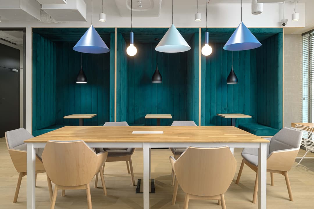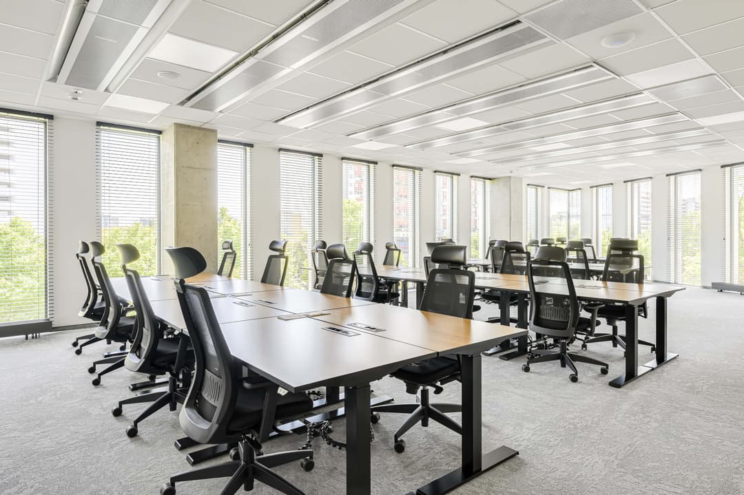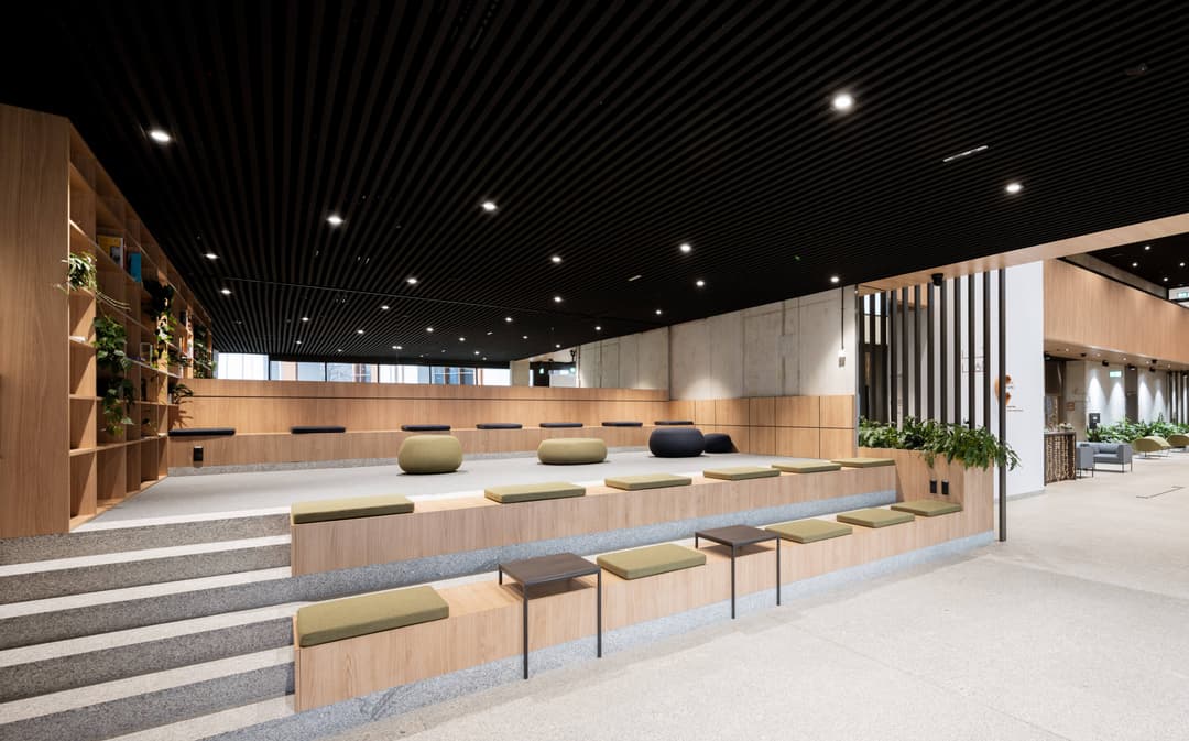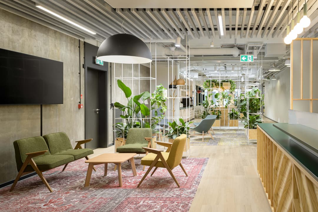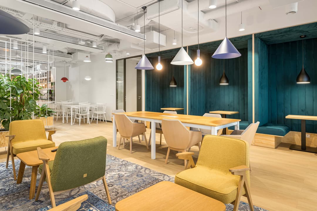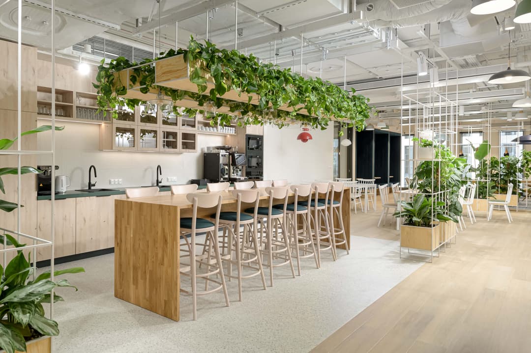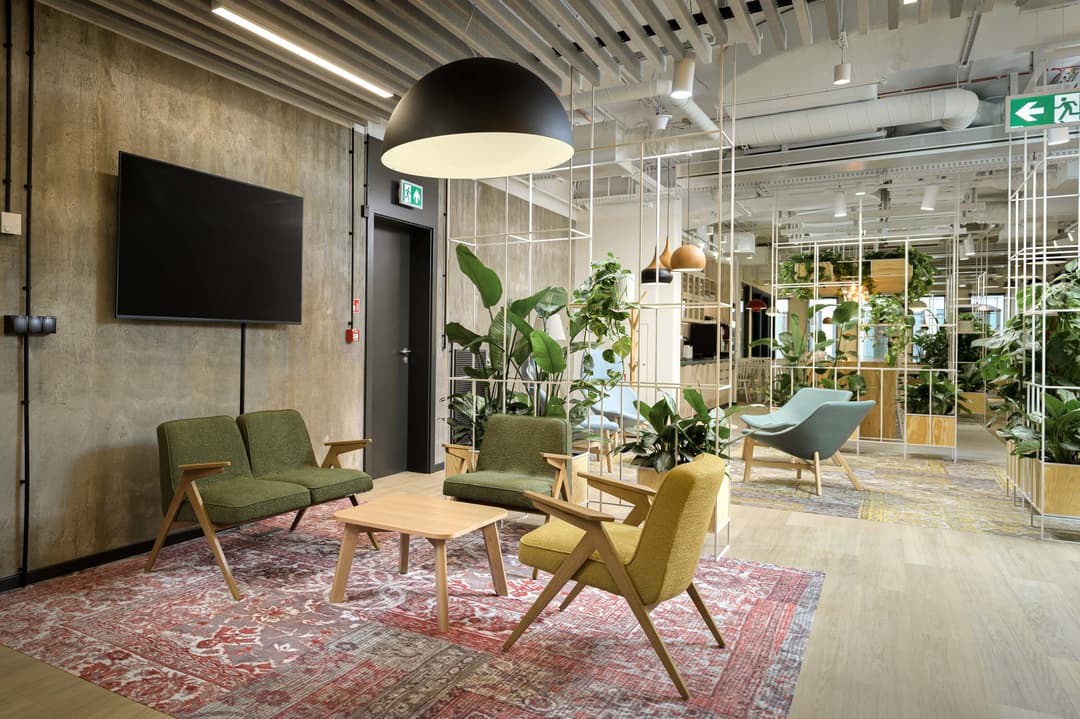 The building itself is LEED Core & Shell Platinum and WELL certified, with ergonomic furniture, modern kitchens, and dedicated server rooms. The green surroundings offer a chance to relax outdoors, and the location is close to university centers, making it easier to attract talent.