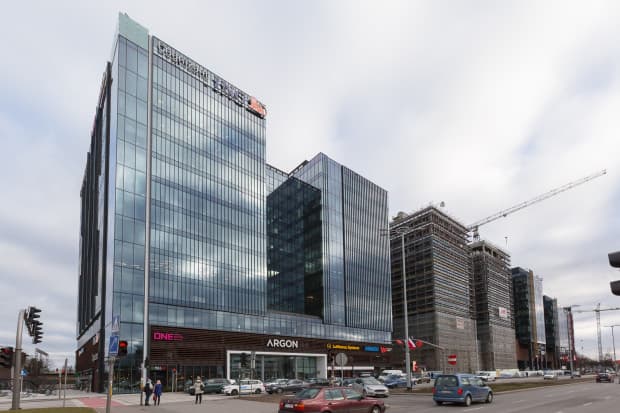 Argon is an office building located at Grunwaldzka 415 in the Oliwa district of Gdańsk, right on the border with Przymorze and close to the University of Gdańsk. The building is part of a larger business complex that stands out with its glass architecture and a mix of retail, service, and leisure spaces on the ground level. Argon rises 14 stories above ground and offers a total of 38 000 m², with about 36 000 m² dedicated to office use. Typical floor plates are around 3 260 m², giving tenants flexibility in how they set up their workspace. The building is designed with energy efficiency and sustainability in mind, holding a LEED Platinum certificate. Large windows let in plenty of daylight, and there’s a full range of facilities for cyclists, plus about 370 underground parking spaces for rent. Public street parking and private parking in nearby lots are also available.