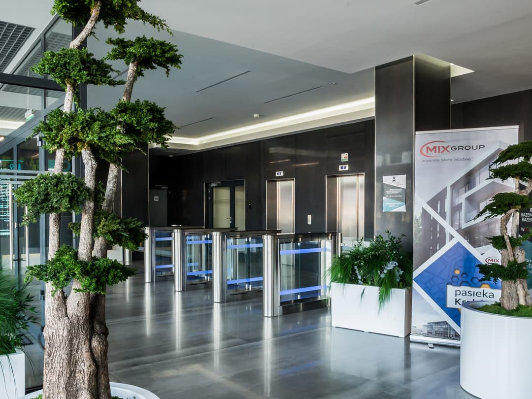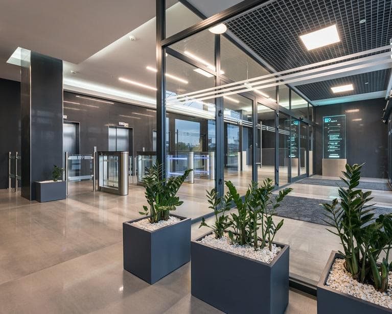 Bronowice Business Center 9 features two entrance halls with reception areas and six elevators, ensuring smooth access for tenants and visitors. Security is a priority, with access control, building monitoring, and 24/7 security services in place. The ground floor includes retail and service spaces, adding convenience for those working in the building.