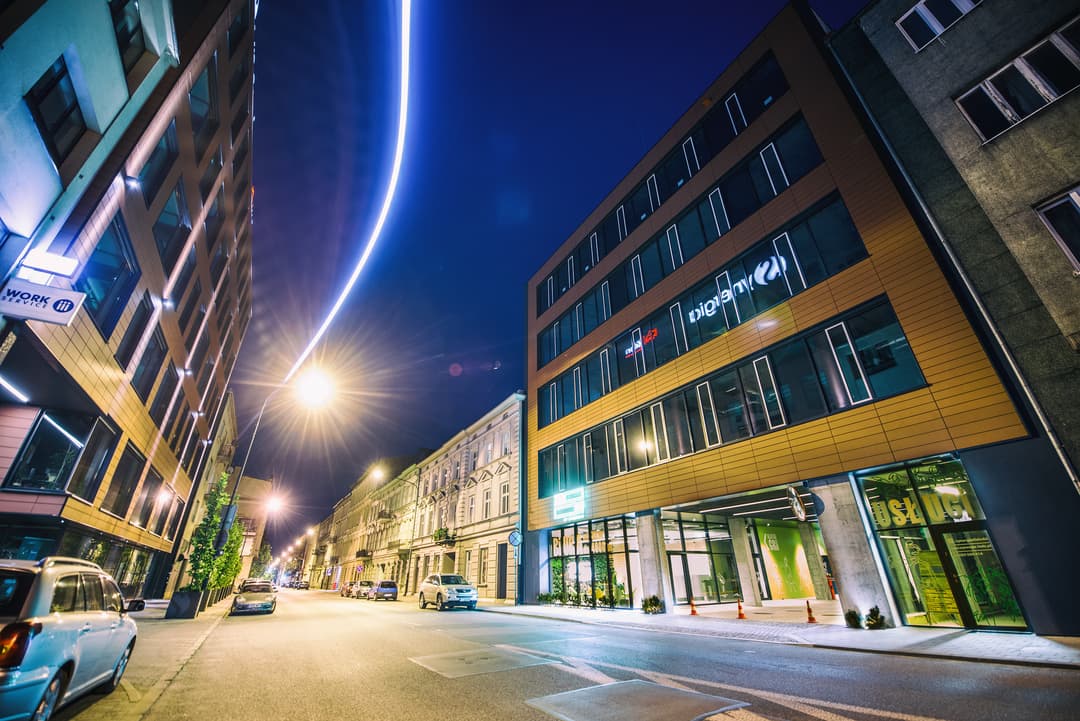 Parking is never a hassle, with underground and overground spaces available to rent in the building, plus public street parking and private lots in the area. When it’s time for a break or a quick lunch, you’ll find plenty of options nearby. Grab a bite at Żabka or Biedronka for groceries, or enjoy a meal at Lewiatan. For coffee lovers, Starbucks and Etno Cafe Jednorożec are just around the corner, and if you’re looking to stay active, gyms like McFit and Kuźnia Centrum Atletyki are within easy reach. Out-of-town guests can stay at hotels such as Hampton or Qubus Hotel, both conveniently located.