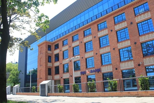 Centrum Biznesowe Kopcińskiego is an office building located at Kopcińskiego Stefana 73/75 in the Widzew district of Łódź, Poland. The property offers around 1 300 m² of office space for lease, spread across five floors. The building is a blend of early 20th-century brick factory architecture and a modern glass extension, following a thorough revitalization that restored its original character while adding contemporary features.