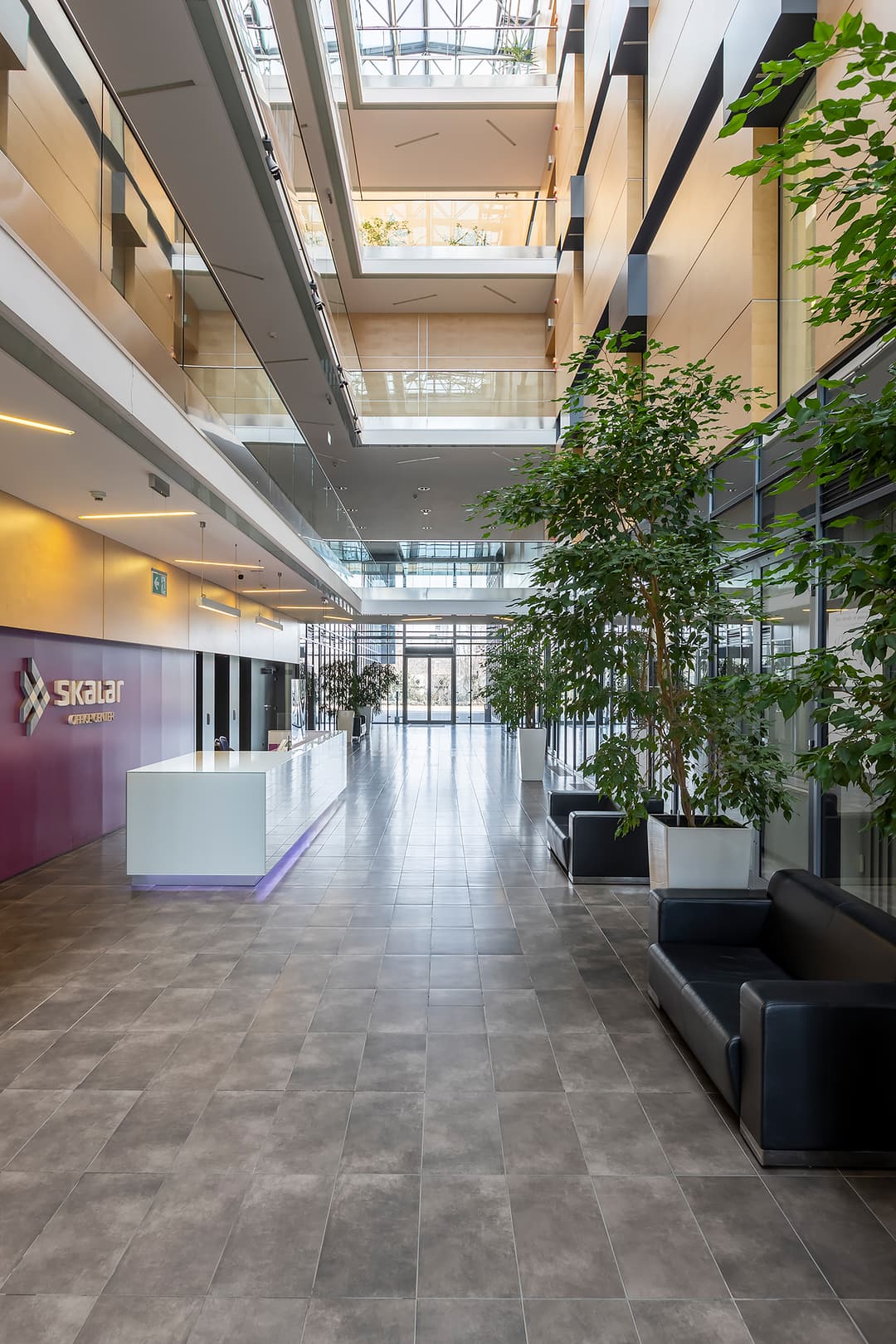 Getting to Skalar Office Center is straightforward, thanks to convenient public transport connections. Several tram lines, including 1, 7, and 11, stop nearby, as well as bus lines 171, 215, 218, and 238. This makes commuting easy for your team and clients alike. For those who drive, the building offers both underground and overground parking spaces for rent. There’s also public street parking and private parking available in nearby lots, so parking is never a hassle.