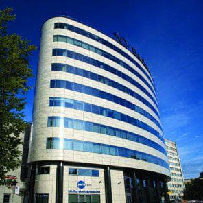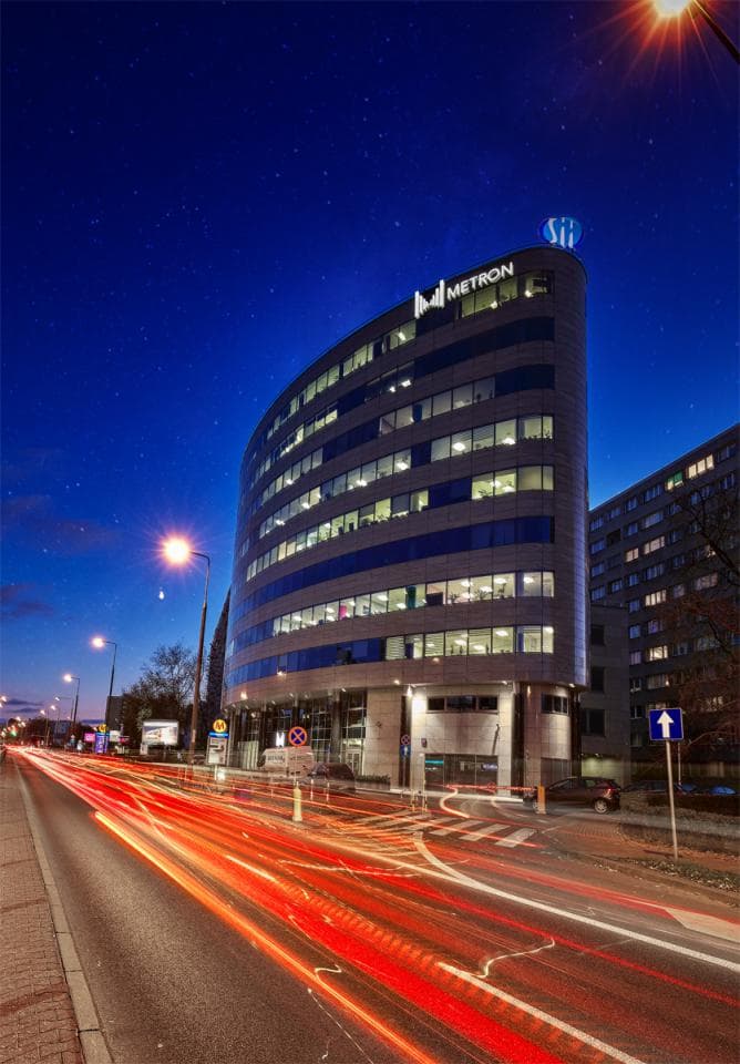 Metron is an office building located at Aleja Niepodległości 69 in the Mokotów district of Warsaw. The building stands out with its distinctive arched facade, featuring alternating rows of windows and sandstone panels that create a unique horizontal pattern. With 10 above-ground floors and a total area of over 11 700 m², Metron offers flexible office spaces and ground-floor retail units. Typical floor plates are around 750 m², making it easy to adapt the space to your business needs.