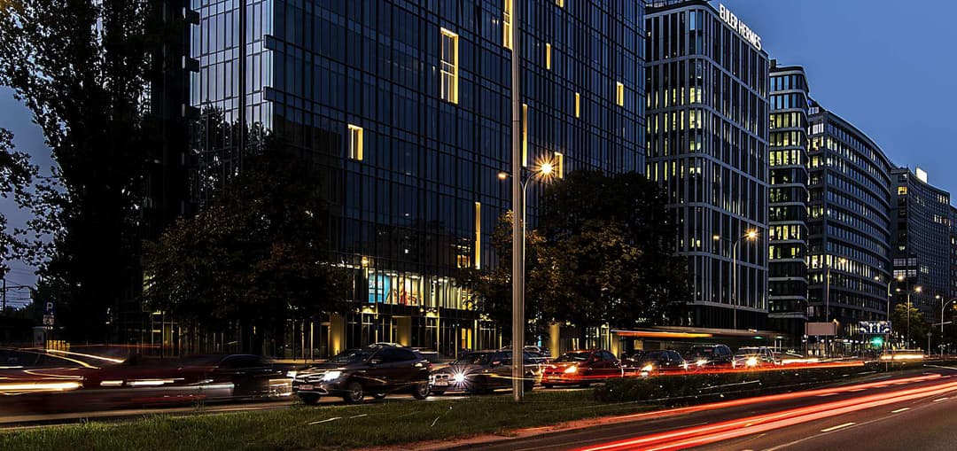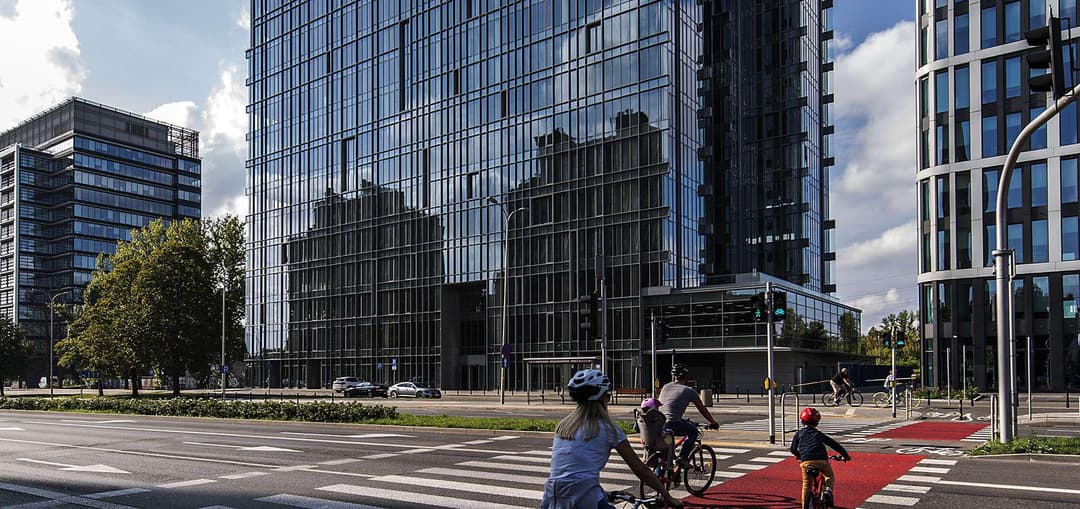 Equator IV is an office building located at Aleje Jerozolimskie 100 in the Ochota district of Warsaw. The building offers a total of 19 640 m² of office space spread across 14 above-ground floors and 4 underground levels, with flexible layouts that can be tailored to suit different business needs. Tenants have access to 229 underground parking spaces for rent, while public street parking and private parking options in nearby lots are also available. For cyclists, there are 53 bike racks on site.