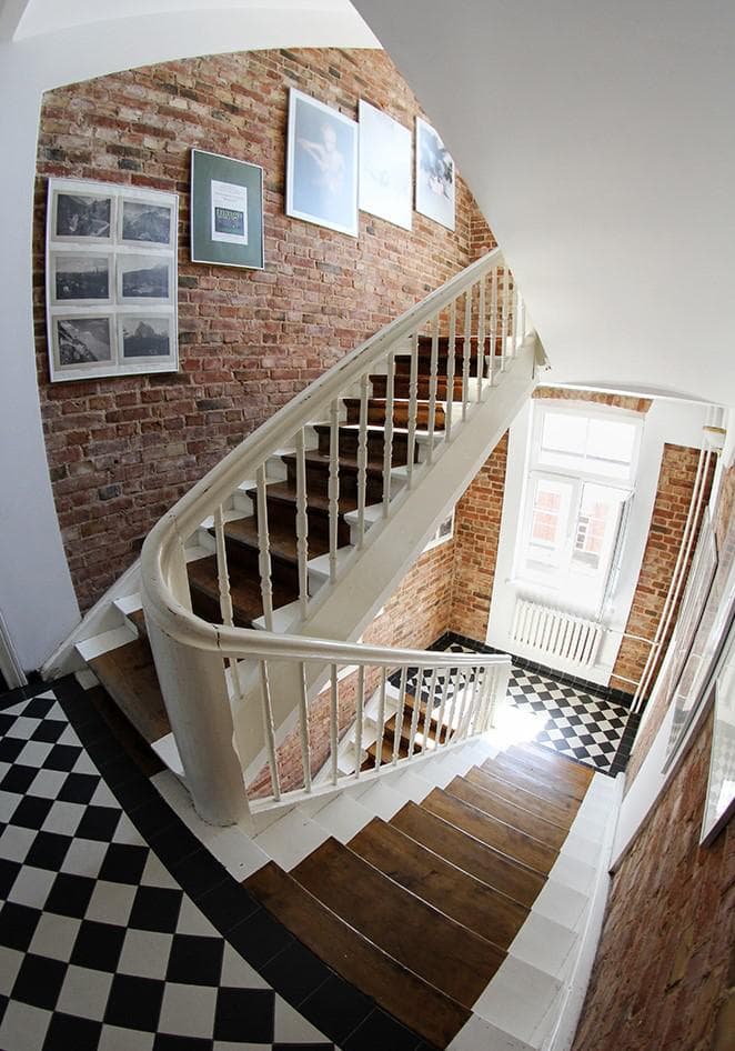 Kamienica Artystyczna at Białostocka 22 in Warsaw’s Praga-Północ is a unique office building with a story that stretches back over a century. Originally built between 1913 and 1916 for the Krzysztof Brun i Syn company, the building has seen everything from bustling industrial workshops to post-war transformations, and even a printing house during martial law. Today, it’s home to a mix of creative studios, galleries, and offices, all set within carefully restored interiors that still feature original wooden staircases, doors, and even a working vintage OTIS elevator. The walls are decorated with old family portraits and company advertisements, giving the place a real sense of history.