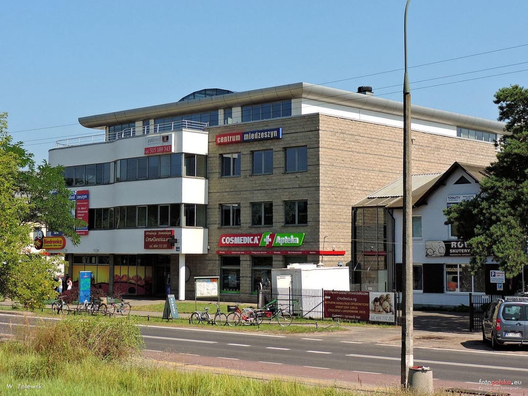 Centrum Miedzeszyn is an office building located at Patriotów 110 in the Wawer district of Warsaw, positioned at the intersection of Patriotów and Lawinowa streets. This spot is about 15 km from the city center, making it a practical choice for businesses looking for a Warsaw address without the downtown rush. The building is well-connected by public transport, with the Warszawa-Miedzeszyn suburban rail station right in front, offering easy access to both Warsaw and Otwock via the S1 and R7 rail lines. Several bus lines, including 521, 142, 319, 115, and the night bus N22, stop nearby, making daily commutes straightforward for your team and visitors.