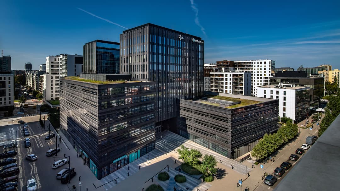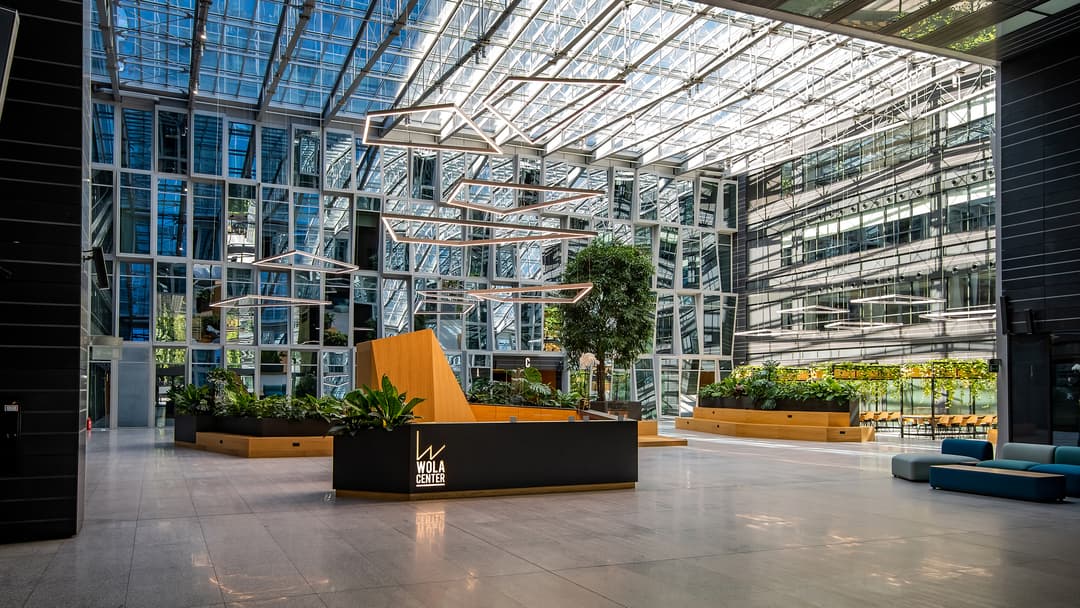 Wola Center at Przyokopowa 33 in Warsaw’s Wola district is a collection of four office buildings connected by a green-filled internal patio. The available office spaces are designed in an open layout, making it easy to adapt them into private rooms or keep them as larger open areas. The total leasable area in the complex is 32 000 m², with individual units ranging from as small as 11 m² up to over 2 300 m², all offered at 17,50 EUR/m² plus a service charge of 19,00 PLN/m². Each space features air conditioning, openable windows, and a welcoming reception area. Security is a priority, with access control, 24/7 monitoring, and a building management system that keeps everything running smoothly.