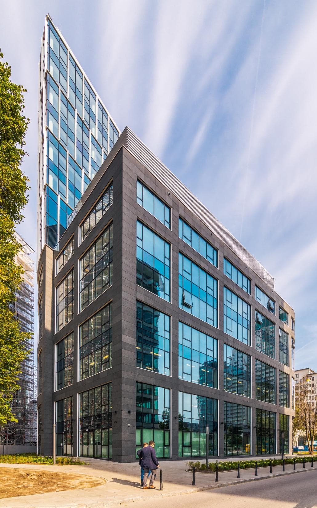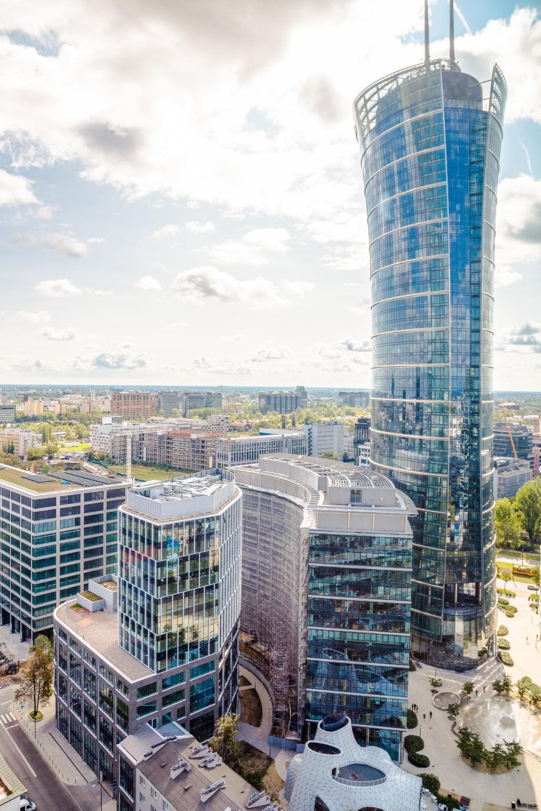 Wronia 31 is an office building located at Wronia 31 in the Wola district of Warsaw, right next to the Warsaw Spire complex and close to the city’s Central Business Area. The building features 15 floors and offers a total of 15 000 m² of office space for lease, along with 850 m² of retail and service areas. There’s a spacious terrace on the 7th floor, perfect for a break or informal meetings, and the building’s design includes large windows for plenty of natural daylight throughout the workspace.