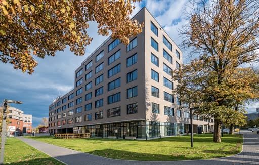 Promenady Business Park - Omega is an office building located on Czesława Miłosza in the Kleczków district of Wrocław. The property is part of a larger business complex that was developed in the Śródmieście area, close to Trzebnicka and Słonimskiego streets. The total office space across the complex was designed to reach 90 000 m², making it a significant business hub in the city. The area is surrounded by residential buildings like Siena and the Promenady Wrocławskie complex, as well as the Zajezdnia Wrocław building, creating a lively neighborhood with a mix of business and residential life.