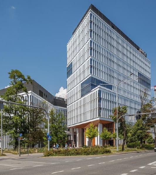 The building is LEED Platinum certified, reflecting a focus on sustainability and modern standards. The outdoor areas are designed for relaxation and art displays, creating a pleasant environment for everyone. Office spaces are available in a range of sizes, from 325 m² to 1 700 m², with rents starting at 15,00 EUR per m² and a service charge of 13,00 PLN per m².