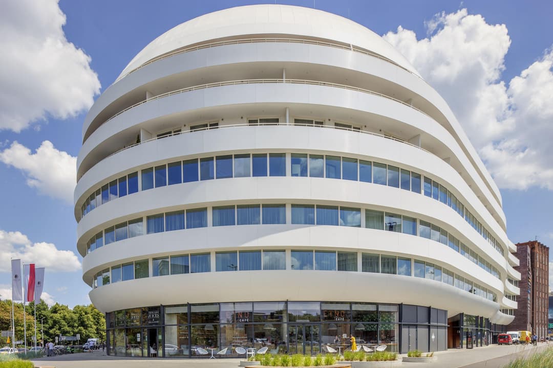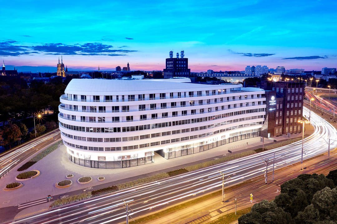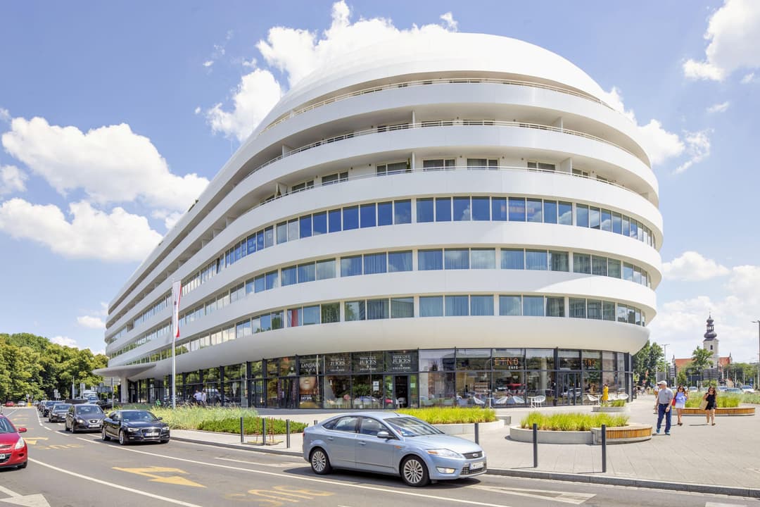 Discover OVO Wrocław, an office building located at Podwale 83 in the Przedmieście Oławskie district of Wrocław. The building stands out with its unique rounded, futuristic architecture and is set right on the border of Krzyki and Stare Miasto, close to the city’s Market Square and the historic Ostrów Tumski. The location puts you steps away from the city’s vibrant business, shopping, and cultural scene, with Galeria Dominikańska and the Hala Targowa nearby, plus green recreational areas along the Odra River for a quick break or after-work stroll.