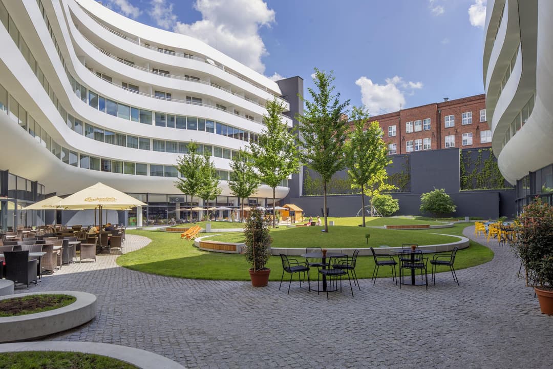 OVO Wrocław is more than just office space-it’s a multifunctional complex that also houses a five-star hotel, conference center, fitness club with pool and spa, exclusive boutiques, and a variety of shops and restaurants. Flexible office modules are available 24/7, with plenty of daylight and eco-friendly solutions to create a comfortable working environment. Tenants benefit from amenities like concierge services, catering, hotel discounts, and underground parking spaces for rent. There’s also public street parking and private parking options in nearby lots.