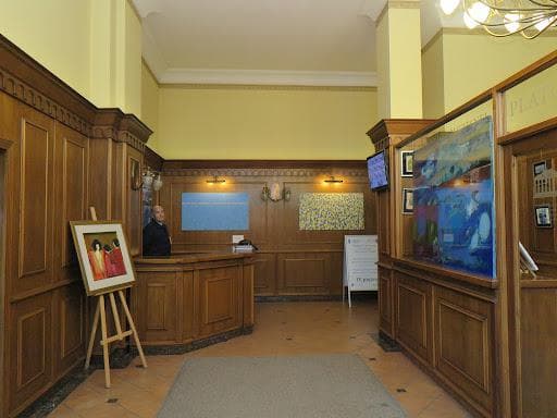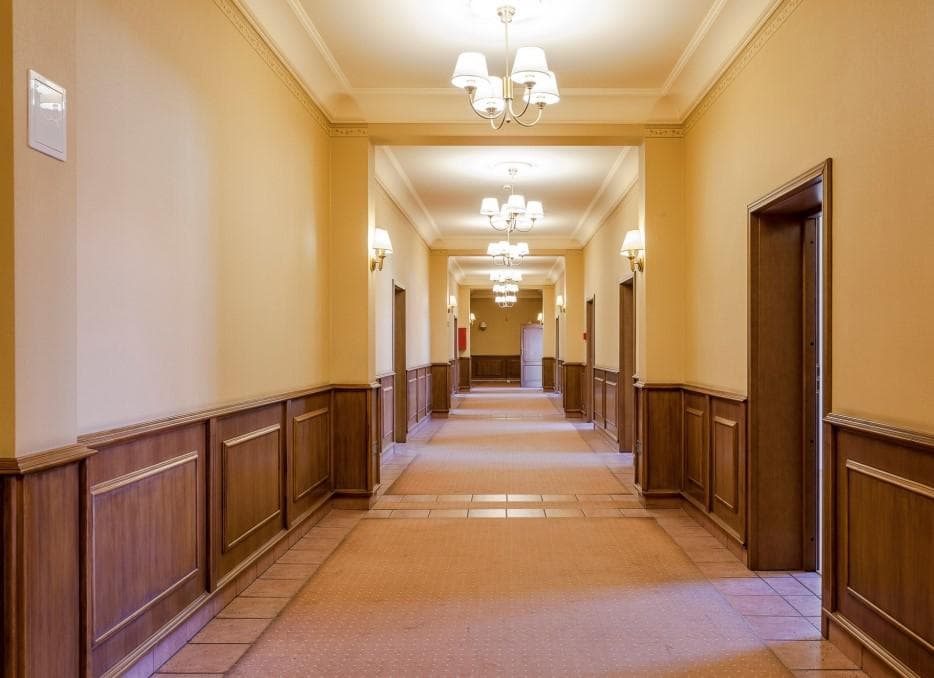 Inside, you’ll find a blend of classic architecture and practical features. The corridors are lined with original works of art, and the interiors are finished to a high standard, echoing the building’s rich history. There are elevators, a central air conditioning system, and windows that open for natural ventilation. Safety is covered with a fire protection system, CCTV monitoring, and 24/7 on-site security.