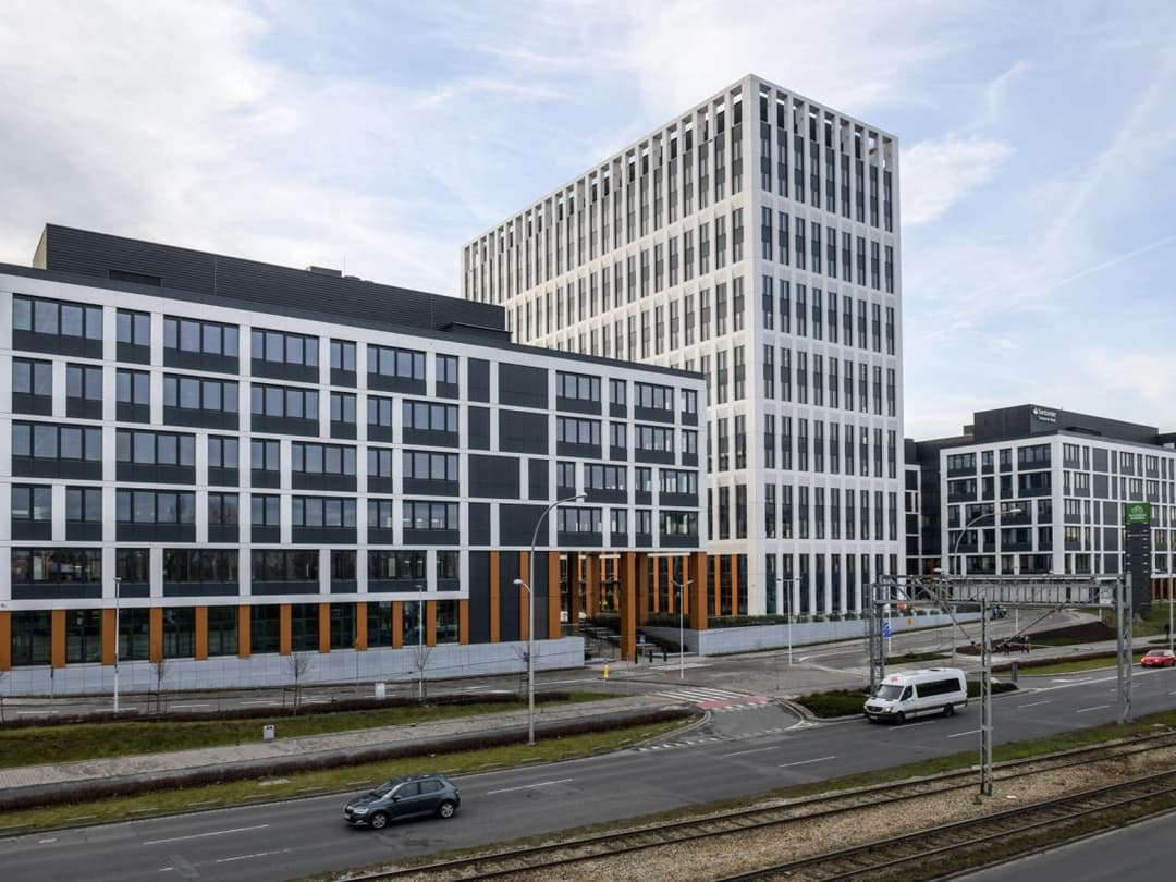 Business Garden Wrocław - Budynek K is an office building located at Legnicka 48 in the Szczepin district of Wrocław. The location is well-connected, with a variety of public transport options nearby, including tram lines 3, 10, and 22, bus lines 132, 149, and 253, and rail connections such as D8, D3, and PR. The Mikołajów railway station is just a few minutes away, making it easy to reach Poznań, Warsaw, and other major Polish cities directly from the office. For those who travel internationally, Wrocław Airport is only about 10 kilometers away, offering regular flights to over 30 European destinations and making business trips convenient.