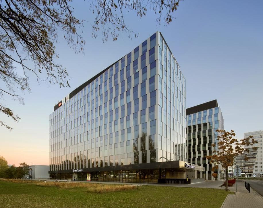 Green Tower A is an office building located at Śrubowa 1 in the Szczepin district of Wrocław, Poland. The building is part of a two-tower complex designed to make the most of natural daylight and flexible office layouts. Each typical floor offers around 1 145 m², giving tenants plenty of room to arrange their workspace as needed. The total office space available in the Green Towers project exceeds 22 000 m², with a variety of units currently available for lease, including options like 52 m², 233 m², 280 m², 847 m², 1 138 m², and 1 146 m². Rental rates are set at 14,00 EUR per m², and the service charge is 18,49 PLN per m².