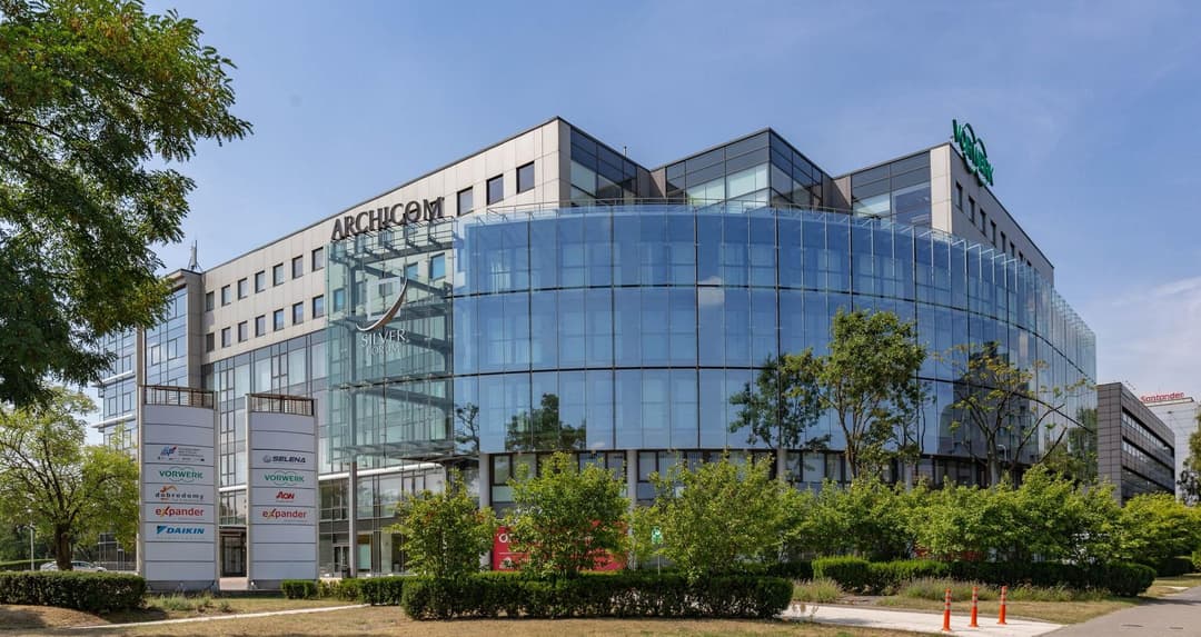 Silver Forum is an office building located at Strzegomska 2/4 in the Szczepin district of Wrocław. The building stands out with its two glass towers and a distinctive arched glass façade at the front. With seven floors and over 16 000 m² of office space for lease, Silver Forum is designed to accommodate a wide range of workspace needs. The layout of the building allows for flexible office arrangements and ensures that every workspace benefits from natural daylight.